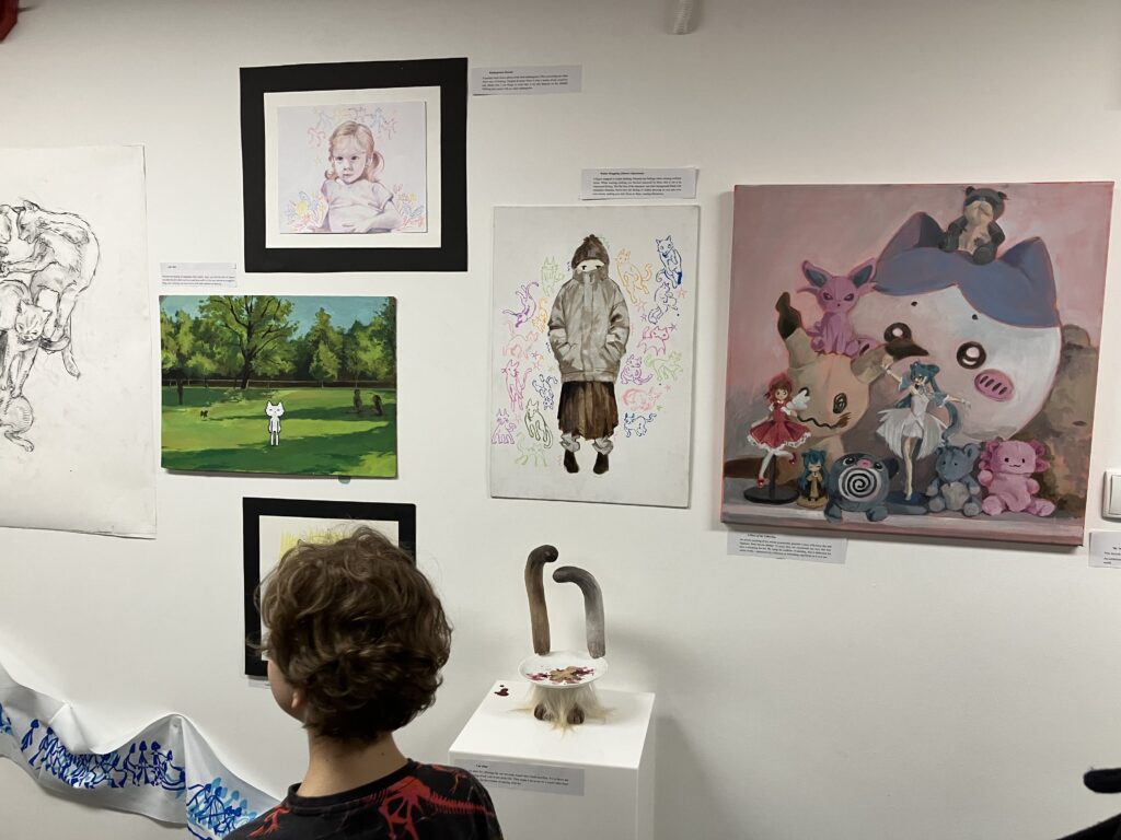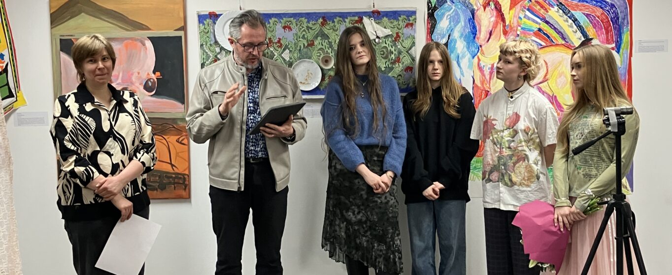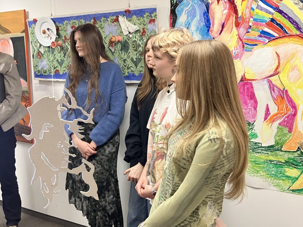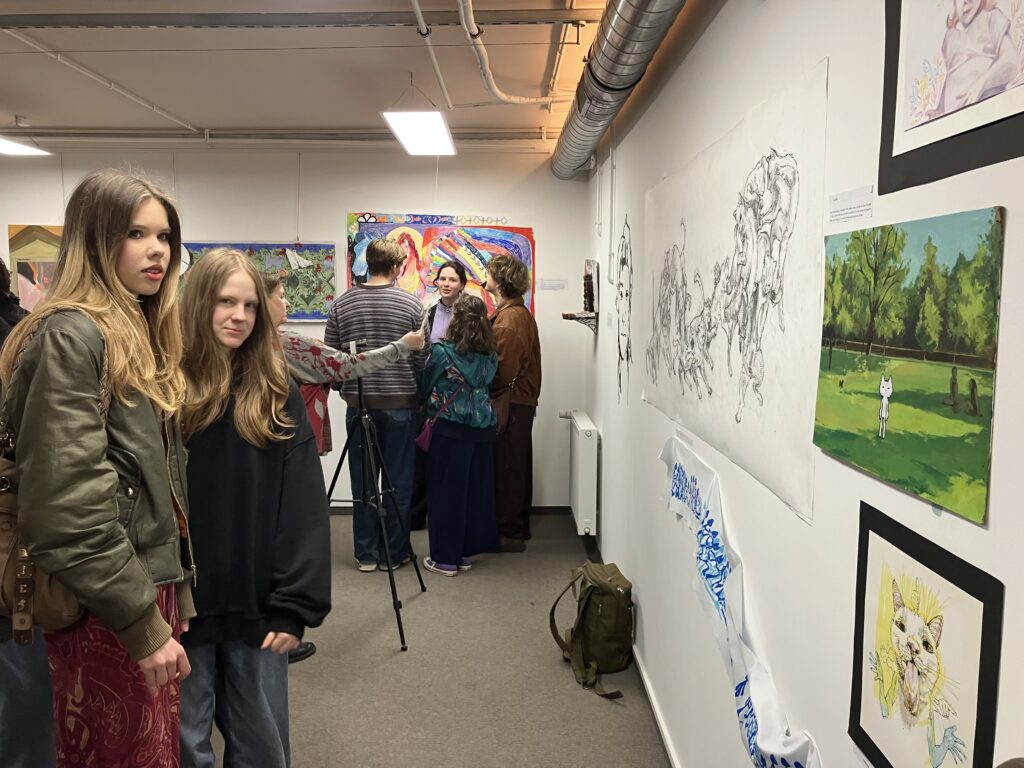 On March 20, at Dom w Alejach (one of the branches of the Śródmieście Cultural Center), the opening of an exhibition took place, prepared by students from DP2 Visual Arts: Kalina, Pola, Zoja, and Kaia, working under the guidance of Katarzyna Gągol.